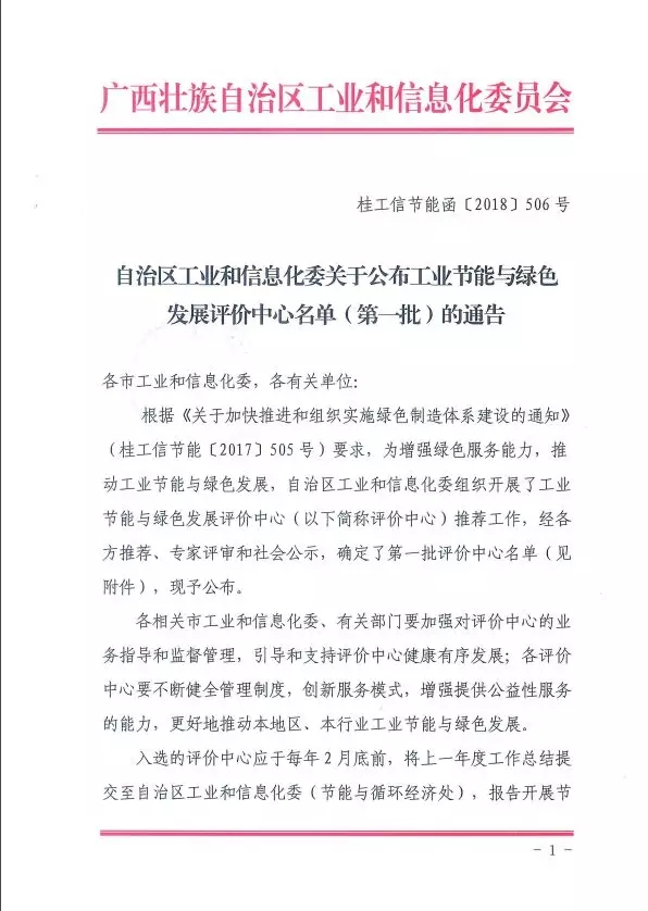 近日,《自治区工业和信息化委员会关于公布工业节能与绿色发展评价中心名单(第一批)的通告》公布了第一批工业节能与绿色发展评价中心名单,博环公司位居其中。